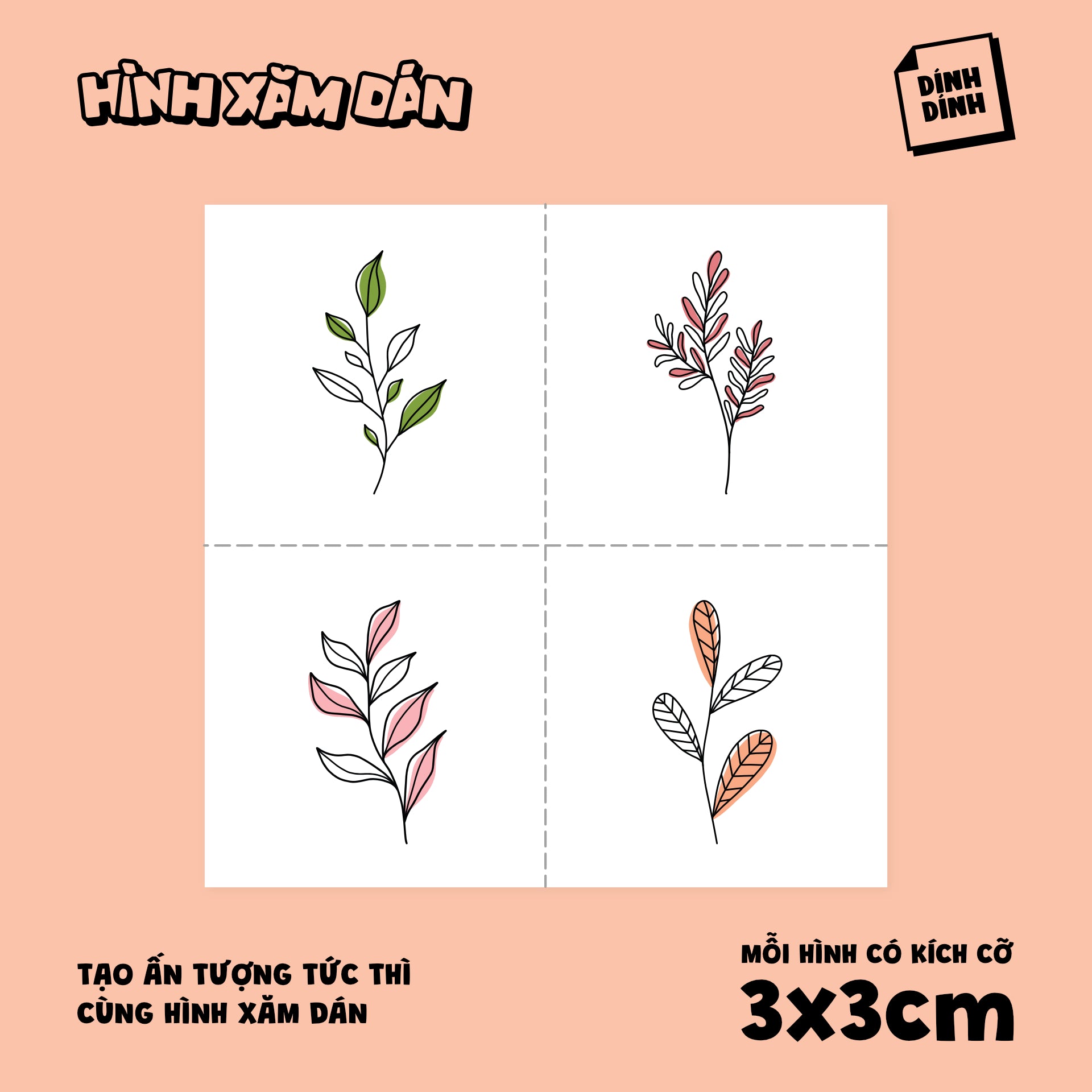 Gồm 4 hình xăm. Kích cỡ mỗi hình trong khoảng 3x3cm.