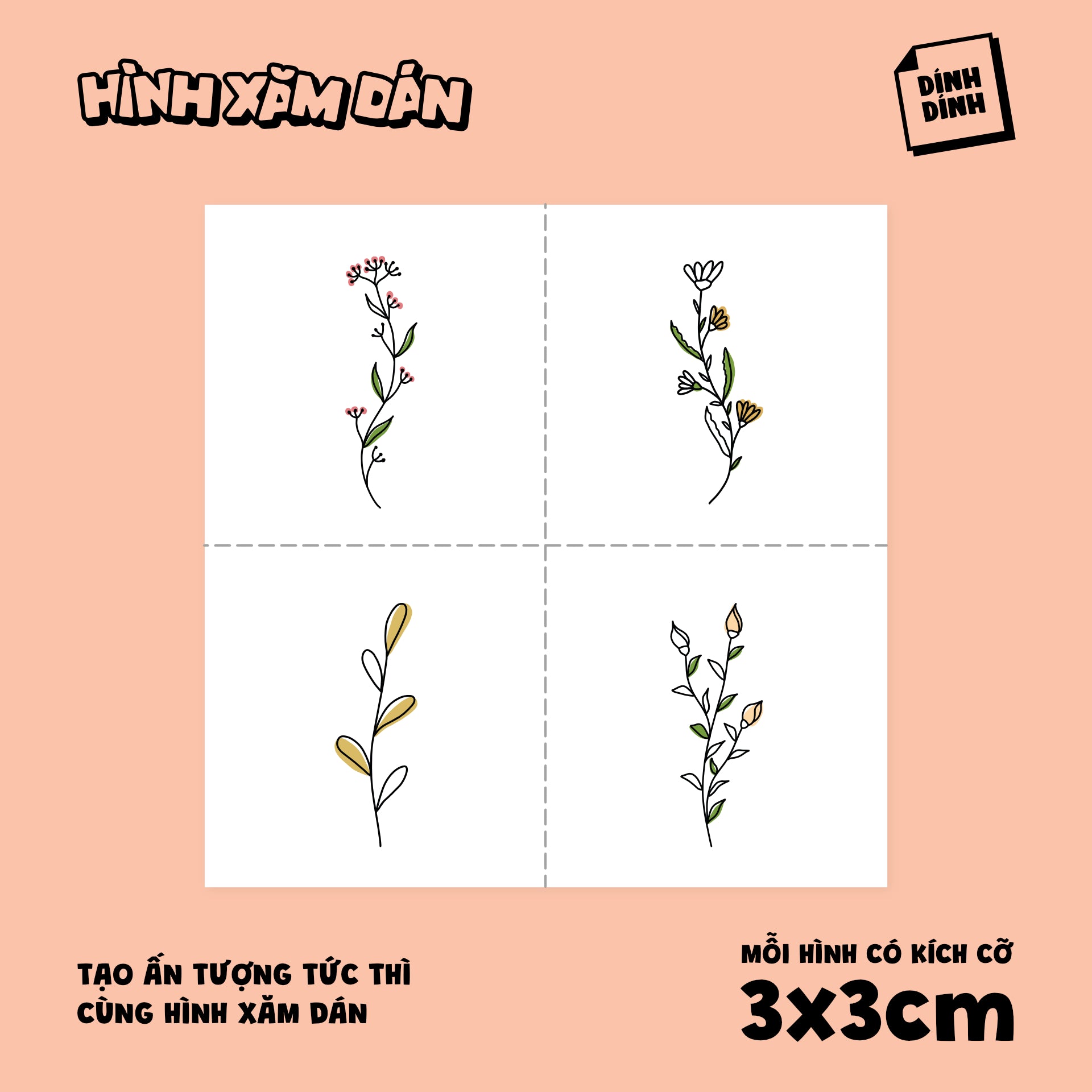 Gồm 4 hình xăm. Kích cỡ mỗi hình trong khoảng 3x3cm.